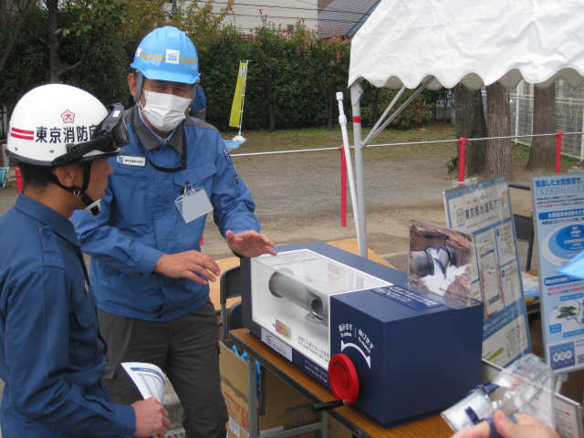 In collaboration with municipalities, police, fire departments, and other organizations, we conduct training exercises using emergency water supply valves, provide training support, and carry out other various types of training.